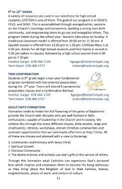Spanish session is offered from 12:00 pm to 1:30 pm. LifeTeen Mass is at